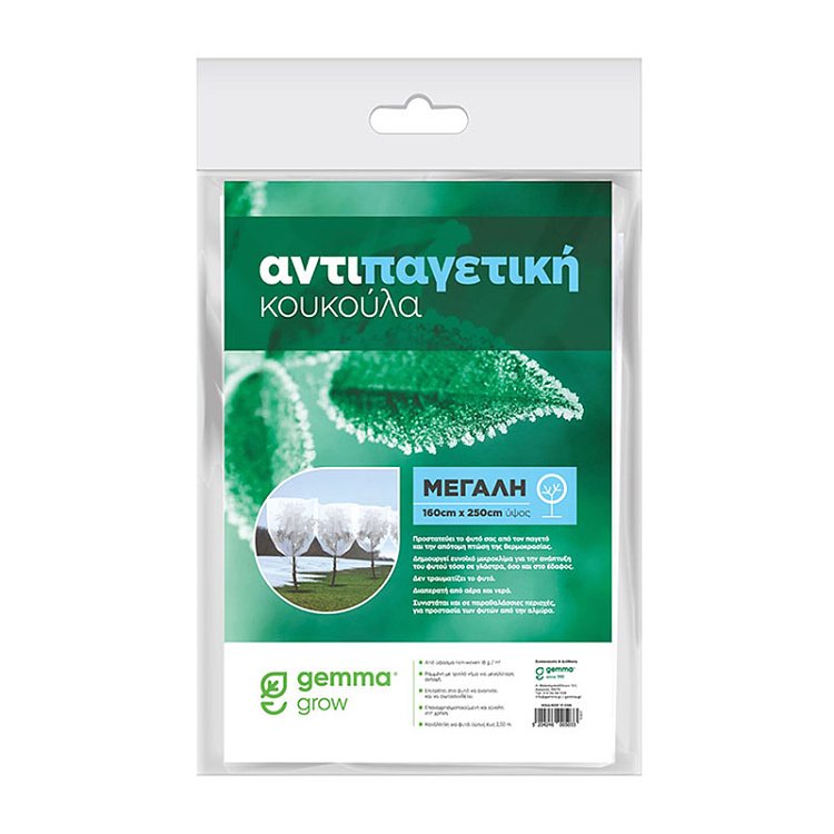 Αντιπαγετική κουκούλα κατάλληλη για την προστασία από παγετό, άνεμο, των νεαρών φυτών, καλλωπιστικών, εσπεριδοειδών, κηπευτικών και όλων των ευπαθών σε παγετό φυτών. Η ειδική υφή της επιτρέπει στα φυτά να αναπνέουν ενώ ταυτόχρονα προστατεύει τα ευαίσθητα μέρη του φυτού χωρίς να τα τραυματίζει. Προστατεύει επίσης από έντομα, αλμύρα και έντονη ηλιοφάνεια. Κατάλληλη για όλα τα φυτά.