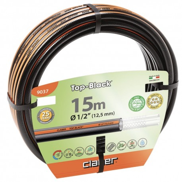 Λάστιχο αντιστρεφόμενο με ειδική πλεκτή ενίσχυση που εγγυάται εξαιρετική σταθερότητα σε υψηλή πίεση νερού, ανθεκτικό στα φύκια και στην υπεριώδη ακτινοβολία. Τα λάστιχα Top-Black είναι 100% ασφαλή, καθώς δεν περιέχουν βαρέα μέταλλα ή φθαλικές ενώσεις.