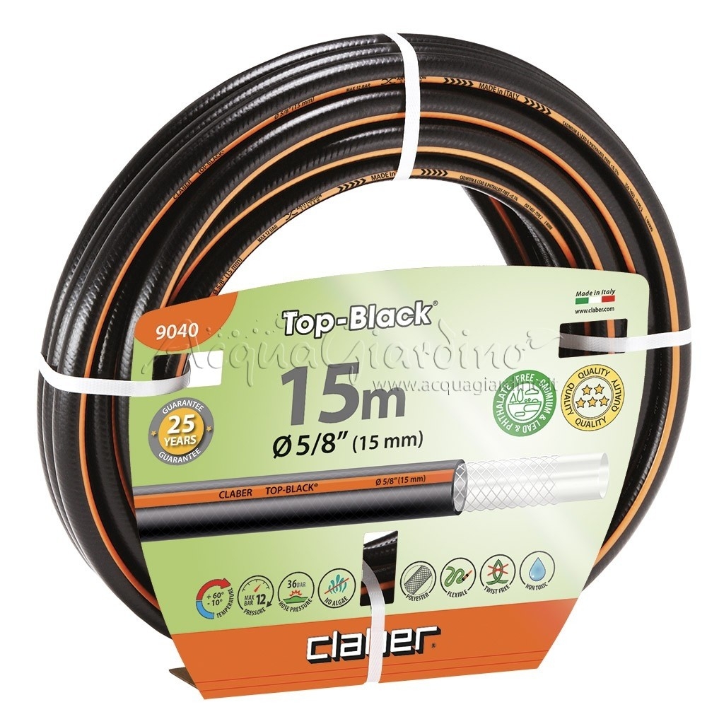 Λάστιχο αντιστρεφόμενο με ειδική πλεκτή ενίσχυση που εγγυάται εξαιρετική σταθερότητα σε υψηλή πίεση νερού, ανθεκτικό στα φύκια και στην υπεριώδη ακτινοβολία. Τα λάστιχα Top-Black είναι 100% ασφαλή, καθώς δεν περιέχουν βαρέα μέταλλα ή φθαλικές ενώσεις.
