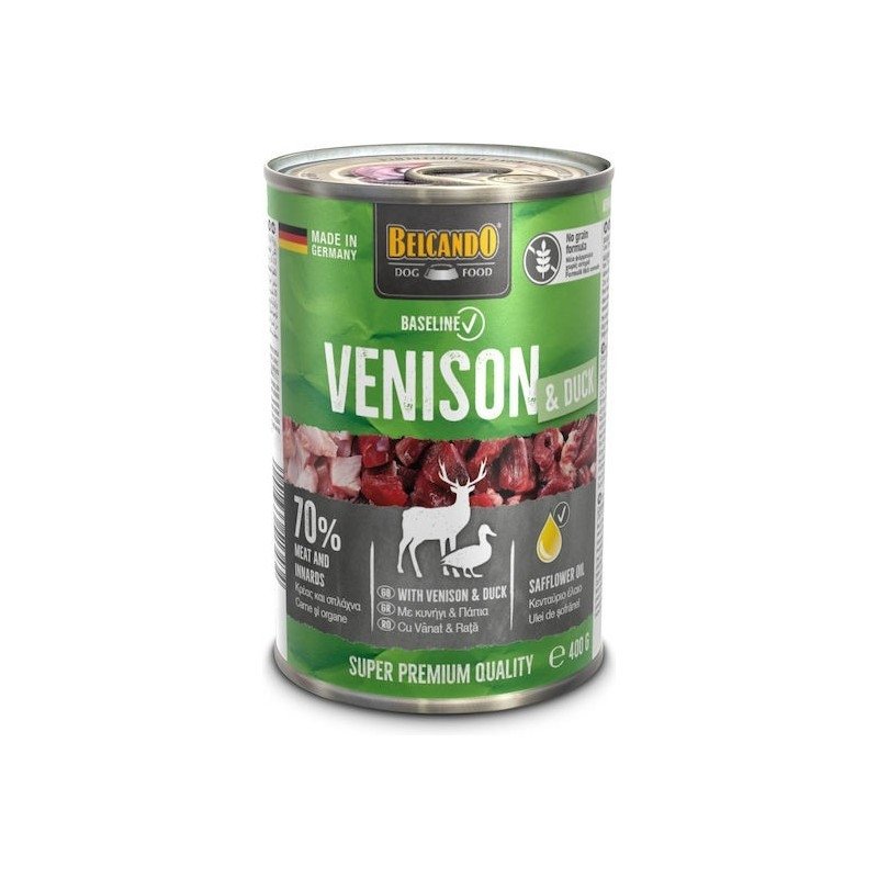 Η Belcando Baseline Grain Free Venison & Duck 400g είναι μια premium υγρή τροφή για σκύλους, ειδικά σχεδιασμένη χωρίς σιτηρά για μέγιστη πεπτικότητα και φυσική θρέψη. Ο συνδυασμός ελαφιού και πάπιας προσφέρει πλούσια γεύση και πρωτεΐνες υψηλής βιολογικής αξίας, συμβάλλοντας στη σωστή ανάπτυξη των μυών και στη διατήρηση της ενέργειας του σκύλου. Η συνταγή είναι ιδανική για σκύλους με ευαισθησίες ή αλλεργίες, καθώς δεν περιέχει σιτηρά ούτε τεχνητά πρόσθετα. Με φυσικά συστατικά και ήπια μαγειρική διαδικασία, διατηρείται η αυθεντική γεύση και η υψηλή θρεπτική αξία. Ενισχυμένη με ωφέλιμα λιπαρά οξέα και βιταμίνες, υποστηρίζει την υγεία του δέρματος, τη λάμψη του τριχώματος και τη συνολική ευεξία του κατοικίδιου σας. Μια γευστική και υγιεινή επιλογή για σκύλους που αξίζουν το καλύτερο.