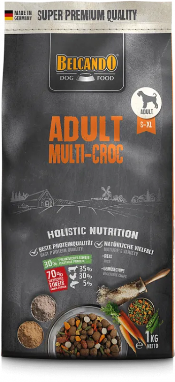 Η Belcando Adult Multi-Croc παρασκευάζεται με συστατικά υψηλής ποιότητας: όλα τα συστατικά κρέατος προέρχονται από ζώα που είναι κατάλληλα για φαγητό. Επιπλέον, η συνταγή περιλαμβάνει άφθονο ρύζι ως εύπεπτη πηγή υδατανθράκων. Η Belcando Finest Croc παράγεται στη Γερμανία και μπορεί να καταναλώνεται καθημερινά χάρη στην υγιεινή σύνθεσή του.