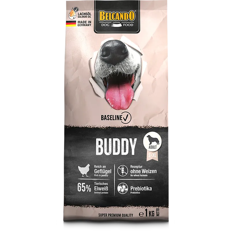 Αυτή η ξηρά τροφή δεν περιέχει σιτάρι, γεγονός που την καθιστά ιδιαίτερα καλά ανεκτή. Δεν περιέχει χρωστικές, αρωματικές ουσίες ή συντηρητικά και δεν έχει πρόσθετη ζάχαρη. Το έλαιο σολομού ως πηγή ωμέγα-3 λιπαρών οξέων εξασφαλίζει λαμπερό τρίχωμα και ελαστικό δέρμα. Παρασκευασμένη στη Γερμανία, η Belcando Baseline Buddy εγγυάται την υψηλότερη ποιότητα και ασφάλεια.