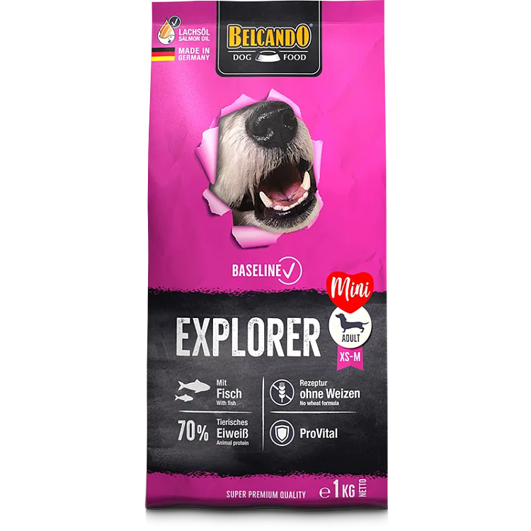 Super premium Ξηρά τροφή σκύλου Belcando Baseline Line Adult Explorer με Ψάρι 12,5kg, για ενήλικους σκύλους μικρού και μεσαίου μεγέθους όλων των φυλών.