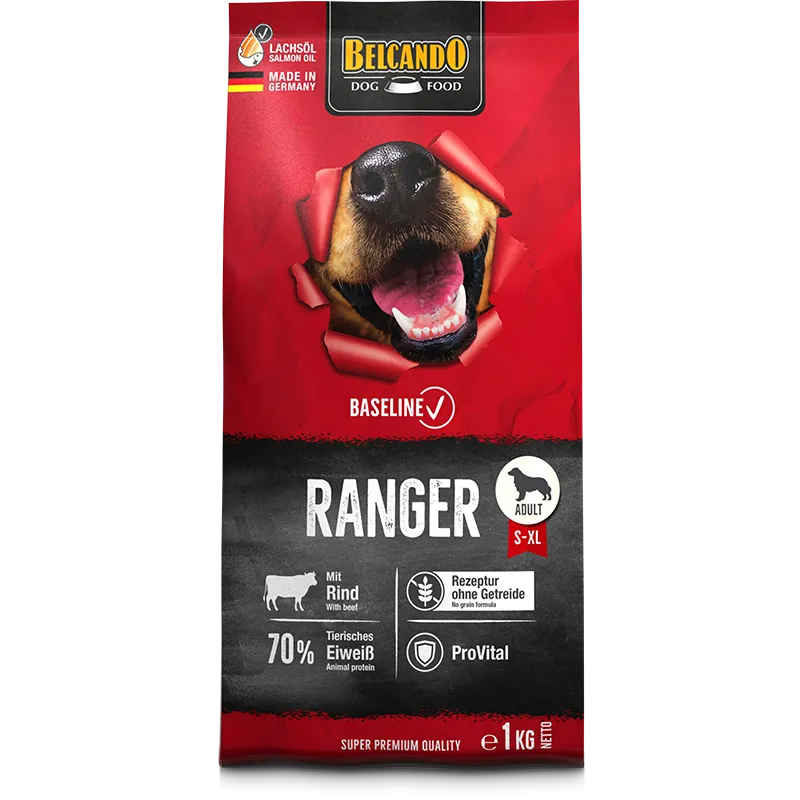 Super premium Ξηρά τροφή σκύλου Belcando Baseline Line Adult Ranger Grain Free με βοδινό κρέας 12,5kg, για ενήλικους σκύλους με κανονικά επίπεδα δραστηριότητας.