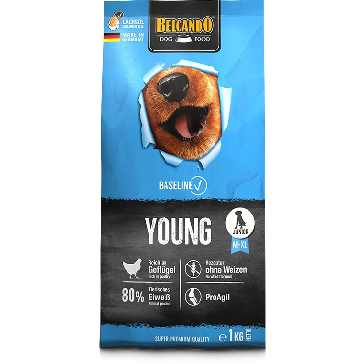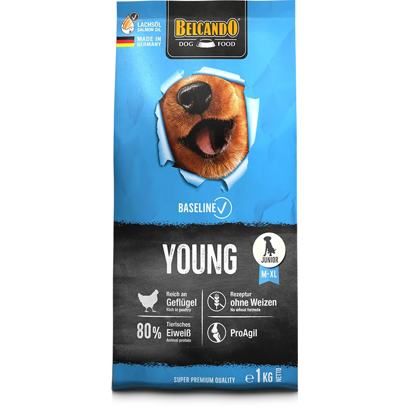 Super premium Ξηρά τροφή σκύλου Belcando Baseline Line Young Poultry 12,5kg με κοτόπουλο, για κουτάβια άνω των 4 μηνών όλων των φυλών.