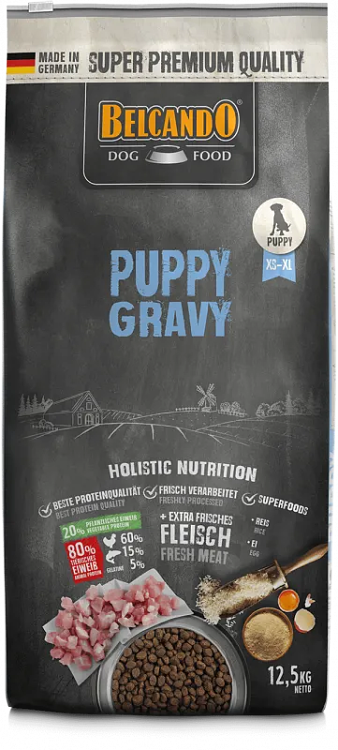 Belcando Puppy Gravy, Ολιστική ξηρά τροφή για κουτάβια όλων των φυλών και για νεαρούς σκύλους μικρόσωμων φυλών για υγιή ανάπτυξη με σημαντικά ανόργανα στοιχεία για τον σχηματισμό των οστών, που εξασφαλίζουν ένα ιδανικό ξεκίνημα στη ζωή.