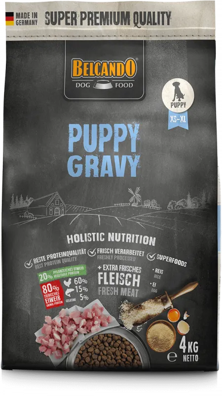 Η Belcando Puppy Gravy είναι ξηρά τροφή για κουτάβια όλων των φυλών. Για μεσαίες και μεγαλόσωμες φυλές έως και 3 μηνών και για μικρόσωμες φυλές μέχρι το τέλος της ανάπτυξης.