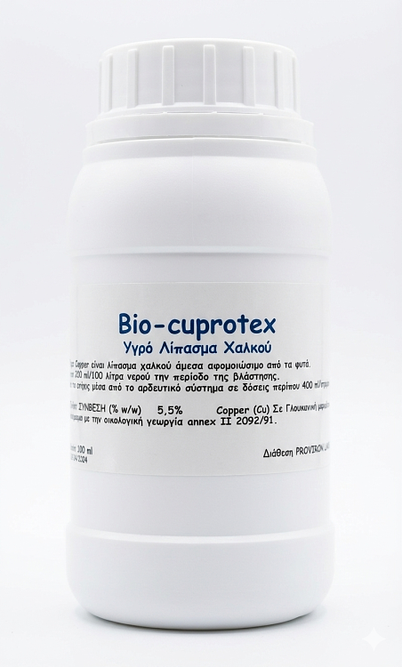 Το Bio-cuprotex είναι ένα προηγμένο υγρό λίπασμα χαλκού, ειδικά σχεδιασμένο για να προσφέρει άμεση θρέψη και ενίσχυση της άμυνας των φυτών. Χάρη στη σύνθεσή του με γλουκονικό χαλκό, απορροφάται ταχύτατα τόσο από το φύλλωμα όσο και από τις ρίζες, προσφέροντας πλήρη κάλυψη σε όλο το σώμα του φυτού.