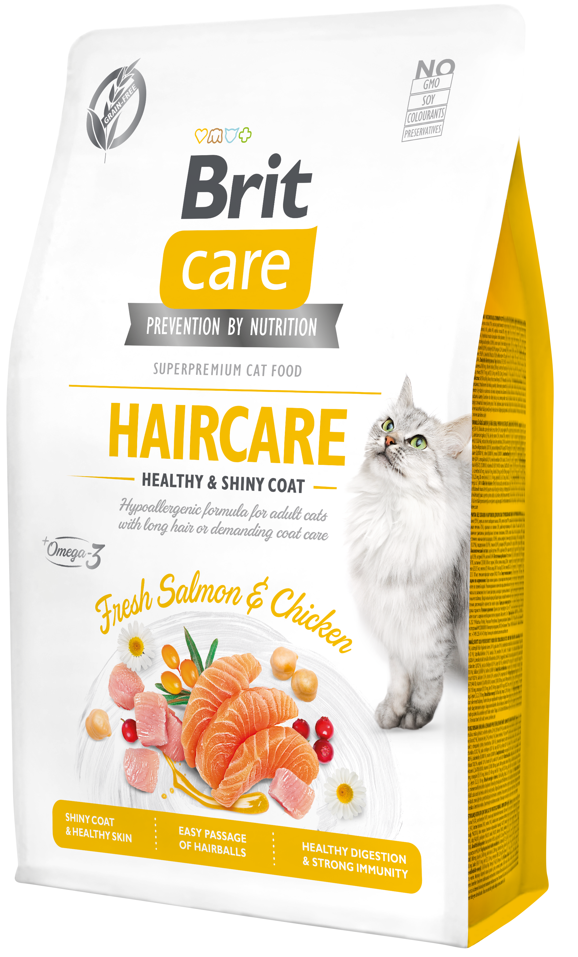 Υποαλλεργική τροφή χωρίς δημητριακά, ειδικά σχεδιασμένη για γάτες με μακρύ και απαιτητικό τρίχωμα, με φυσικές πηγές ωμέγα-3 και ωμέγα-6 για υγιές δέρμα, λαμπερό τρίχωμα και μειωμένη τριχόπτωση.