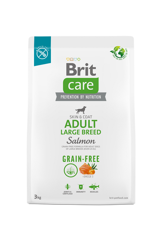 Η superpremium σύνθεση χωρίς δημητριακά με σολομό και πατάτα για ενήλικους σκύλους μεγαλόσωμων φυλών είναι ιδανική για σκύλους που χρειάζονται ολοκληρωμένη υποστήριξη της υγείας τους. Περιέχει πρωτεΐνες υψηλής διατροφικής αξίας και ωμέγα-3 λιπαρά οξέα που ενισχύουν την υγεία του δέρματος και του τριχώματος. Η τροφή αυτή περιλαμβάνει επίσης χονδροπροστατευτικά, απαραίτητα για τη φροντίδα των αρθρώσεων και των χόνδρων, ενώ η απουσία δημητριακών καθιστά τη σύνθεση κατάλληλη για σκύλους με ιδιαίτερες διατροφικές ανάγκες. Υποστηρίζει το ανοσοποιητικό σύστημα και την καρδιακή υγεία, εξασφαλίζοντας παράλληλα την εξαιρετική φυσική κατάσταση.