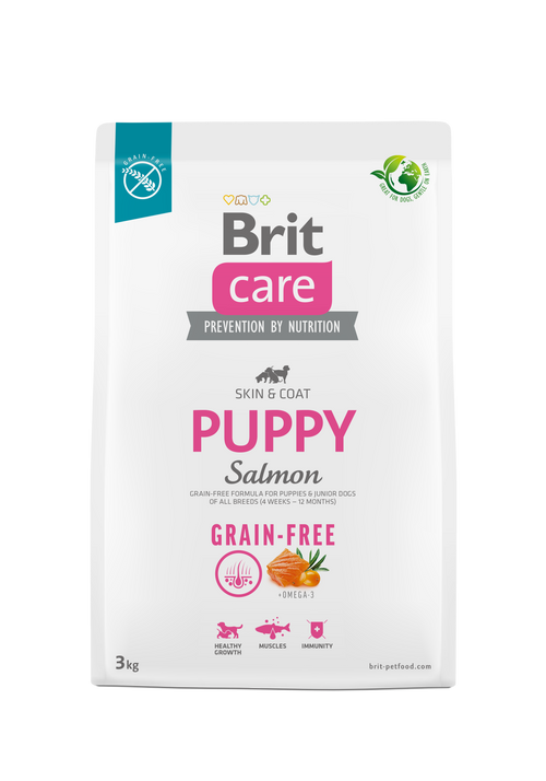 Πλήρης τροφή χωρίς δημητριακά με σολομό και πατάτα, ιδανική για κουτάβια και νεαρούς σκύλους όλων των φυλών (4 εβδομάδες – 12 μήνες). Υποστηρίζει την υγιή ανάπτυξη, το ανοσοποιητικό σύστημα, και προάγει υγιές δέρμα και τρίχωμα.