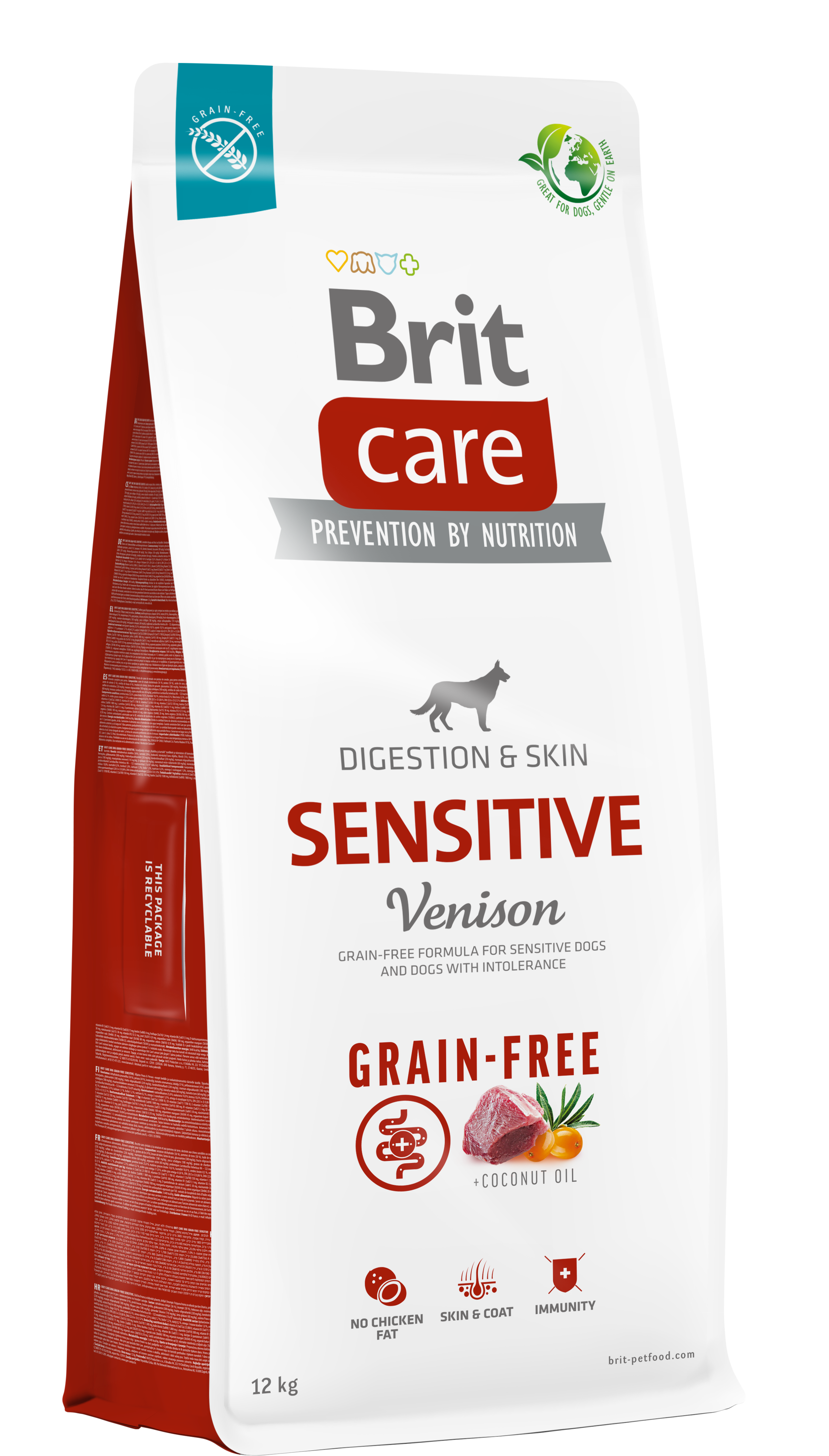 Πλήρης τροφή χωρίς δημητριακά με ελάφι και πατάτα, ειδικά σχεδιασμένη για σκύλους με ευαίσθητο πεπτικό σύστημα ή δυσανεξία, που υποστηρίζει την πέψη, το δέρμα και το τρίχωμα.