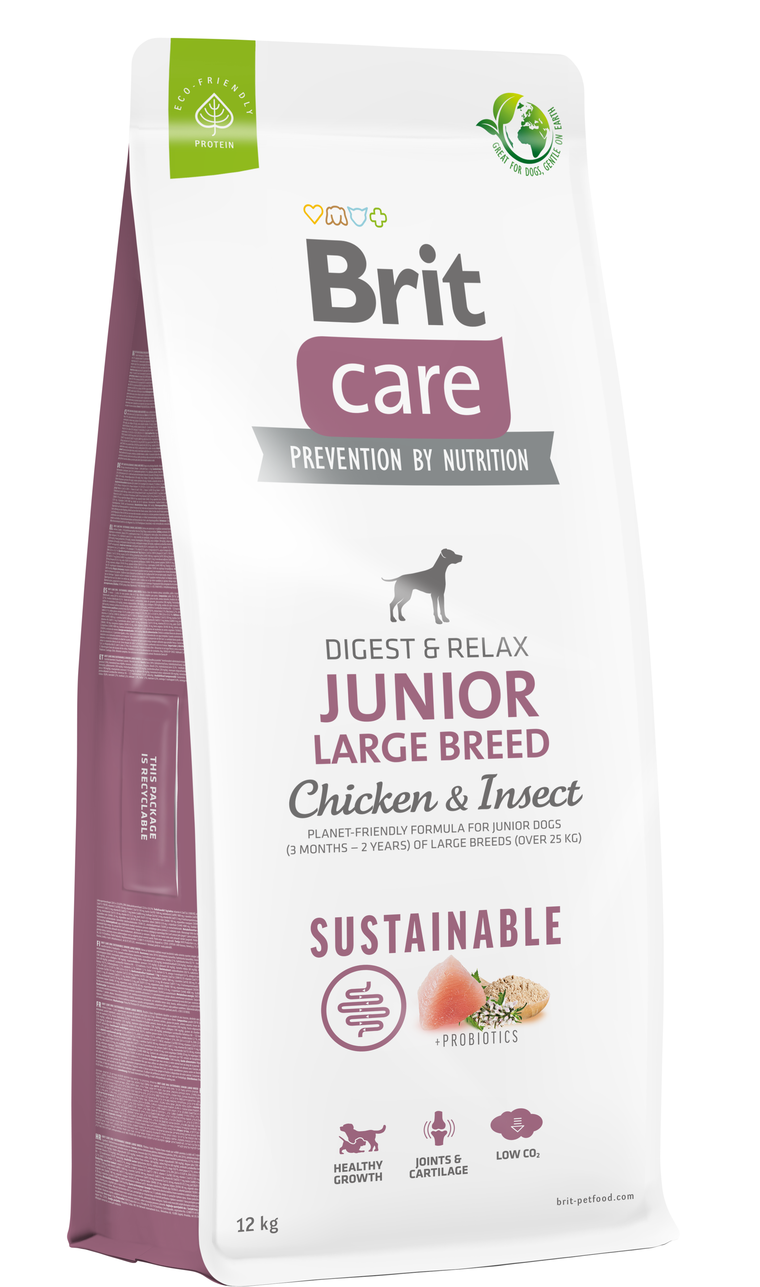 Σύνθεση από φιλικά προς το περιβάλλον συστατικά, για νεαρούς σκύλους μεγαλόσωμων φυλών (3 μήνες - 2 έτη), προσφέροντας υγιή πέψη, υποστήριξη του ανοσοποιητικού και ανάπτυξη ισχυρών μυών και ιστών.