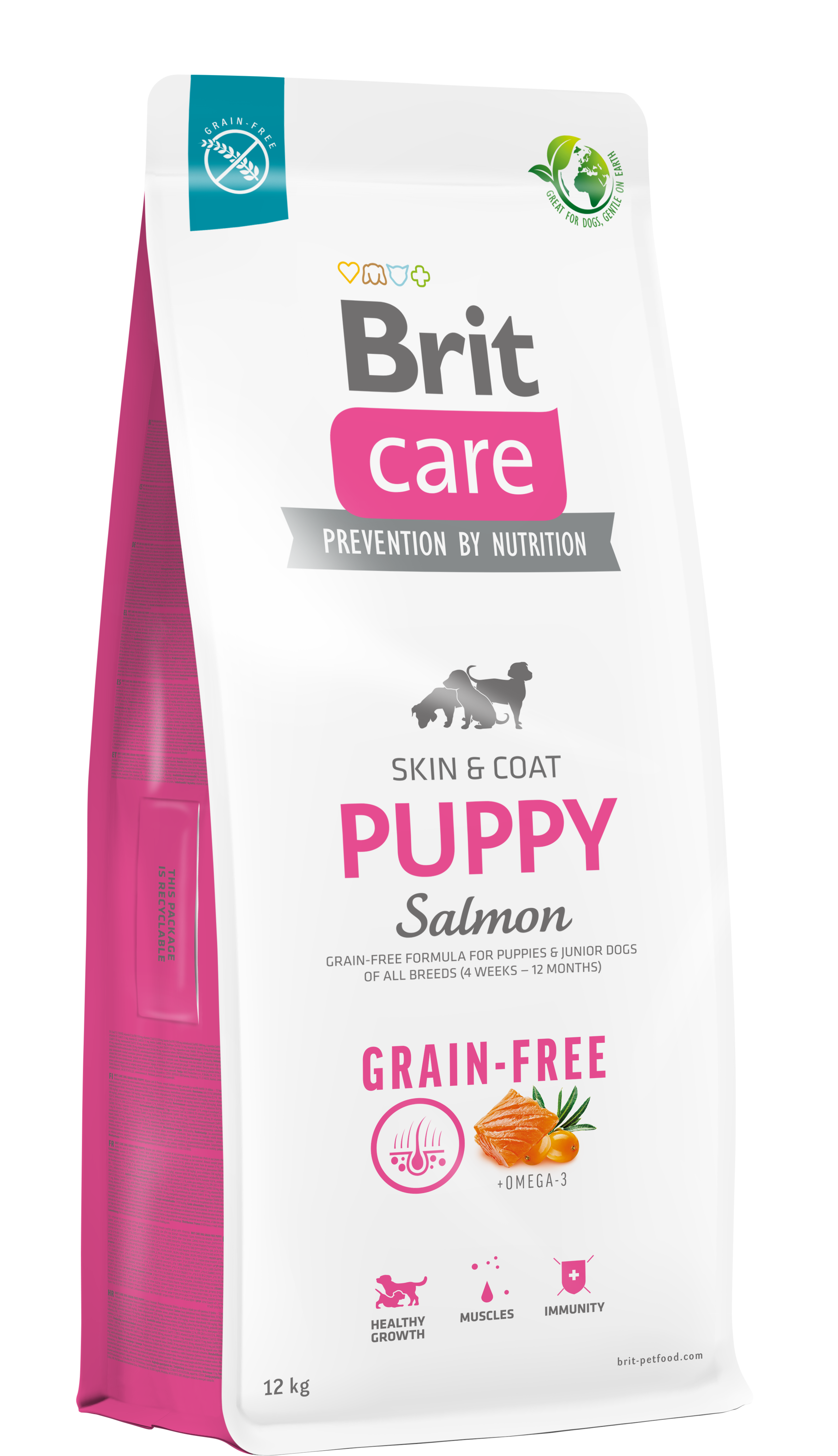 Πλήρης τροφή χωρίς δημητριακά με σολομό και πατάτα, ιδανική για κουτάβια και νεαρούς σκύλους όλων των φυλών (4 εβδομάδες – 12 μήνες). Υποστηρίζει την υγιή ανάπτυξη, το ανοσοποιητικό σύστημα, και προάγει υγιές δέρμα και τρίχωμα.