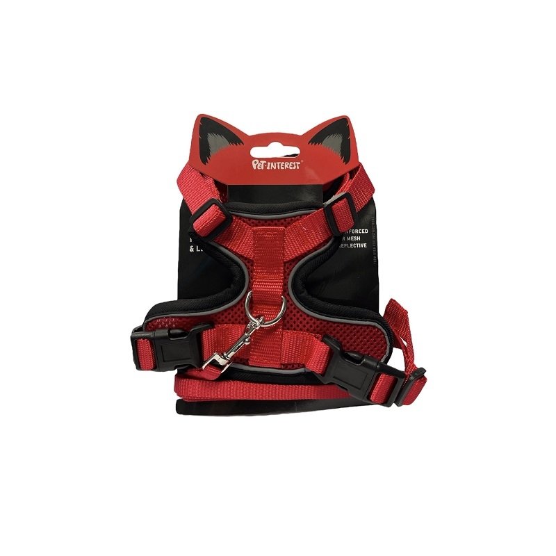Ενισχυμένη ζώνη και λουρί για γάτες. Χρώμα: Κόκκινο. Ζώνη Air mesh με ανακλαστικές ρίγες. Μέγεθος: S, Διαστάσεις: λουρί: 1*120cm, ζώνη: 40-50cm