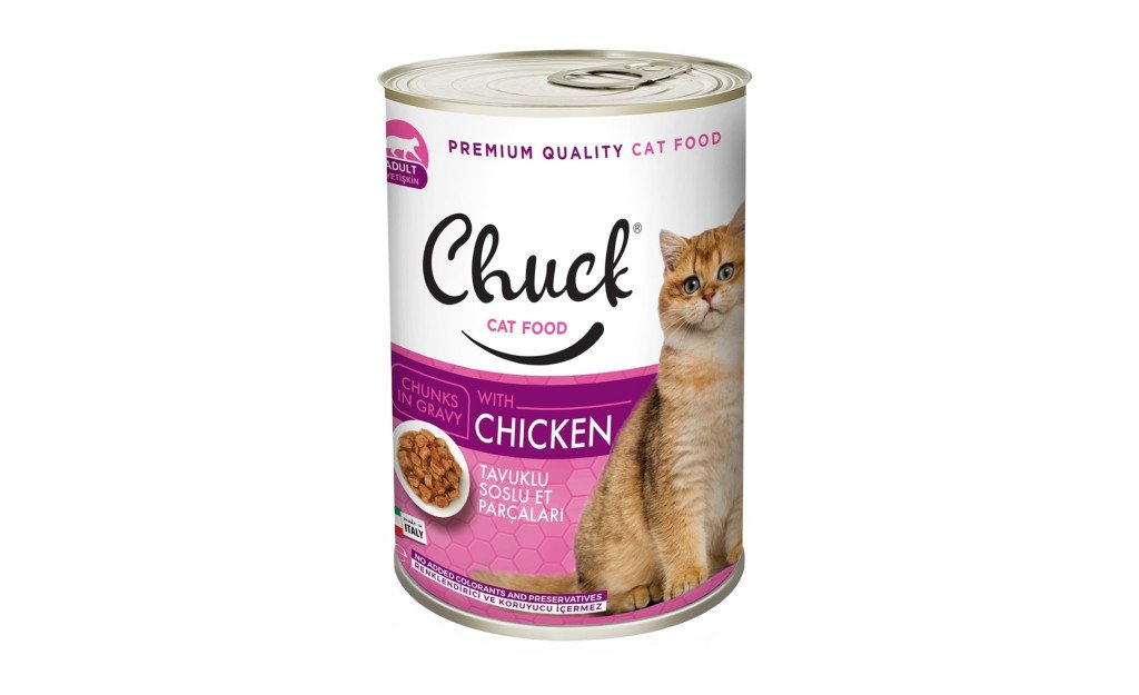 Πλήρης νωπή τροφή με κομμάτια κοτόπουλου σε σάλτσα, για ενήλικες γάτες όλων των φυλών.