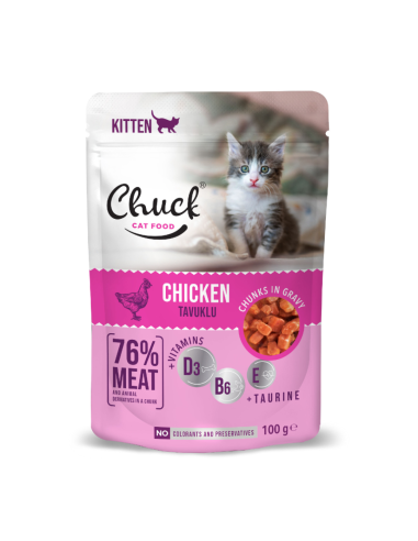 Σύνθεση: Κρέας και ζωικά προϊόντα 72%, κοτόπουλο 4%, δημητριακά, εκχυλίσματα φυτικών πρωτεϊνών, μέταλλα, διάφορα σάκχαρα