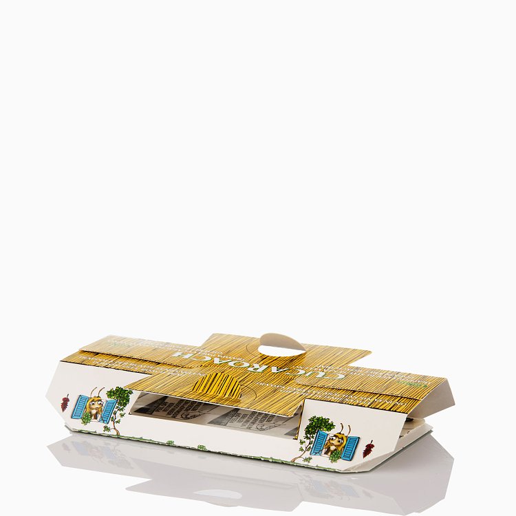 Μορφή: Παγίδα για κατσαρίδες και άλλα βαδιστικά έντομα με άρωμα μελάσσα και κόλλα.