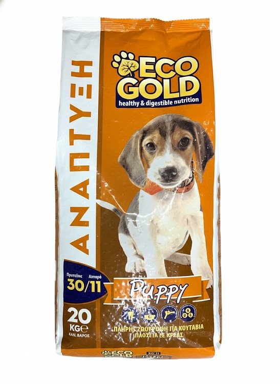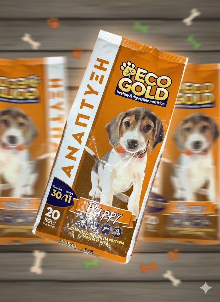 Δώστε στο κουτάβι σας το καλύτερο ξεκίνημα στη ζωή με την Eco Gold Puppy. Μια εξαιρετικά ισορροπημένη τροφή, ειδικά σχεδιασμένη για να καλύπτει τις αυξημένες ενεργειακές ανάγκες της περιόδου ανάπτυξης. Με πλούσια γεύση κρέατος που λατρεύουν οι μικροί μας φίλοι και όλα τα απαραίτητα θρεπτικά συστατικά.