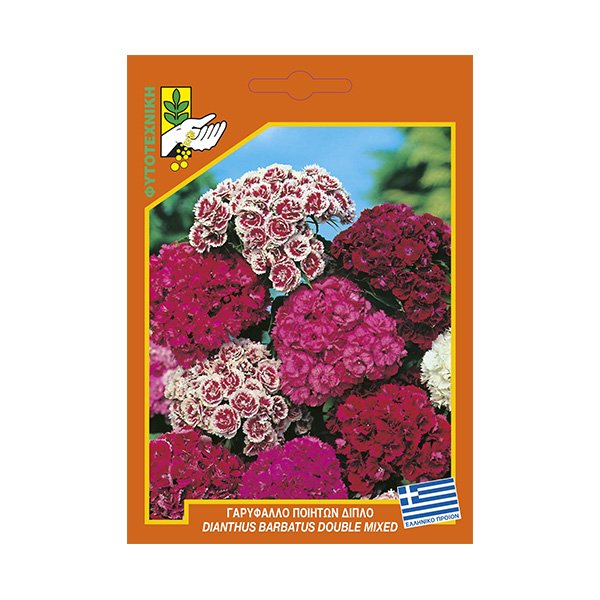 Η πιο ωραία παραγωγή είναι αυτή που καλλιεργείς εσύ! Ερασιτεχνικά φάκελα μίγματος σπόρων διπλού γαρύφαλλου ποιητών κατάλληλα για τον κήπο σας. Σφραγισμένοι σε ειδικά σχεδιασμένα φάκελα, με ασφαλή συσκευασία για διατήρηση της ποιότητας και εύκολη αποθήκευση. Πρόσθεσε στο καλάθι σου το ελληνικό προϊόν, του μίγματος σπόρου του διπλού γαρύφαλλου ποιητών για να εξασφαλίσεις άριστη ποιότητα σπόρου, ομοιόμορφη βλαστικότητα, εγγυημένη απόδοση και ομορφιά. Εποχή φύτευσης: άνοιξη.