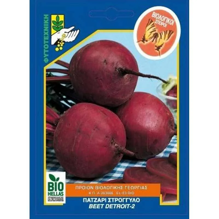 Βιολογικός σπόρος στρογγυλού παντζαριού σε συσκευασία φακέλου. Προϊόν βιολογικής γεωργίας, ελεγμένο από την BIO HELLAS, τον οργανισμό ελέγχου και πιστοποίησης βιολογικών προϊόντων.
