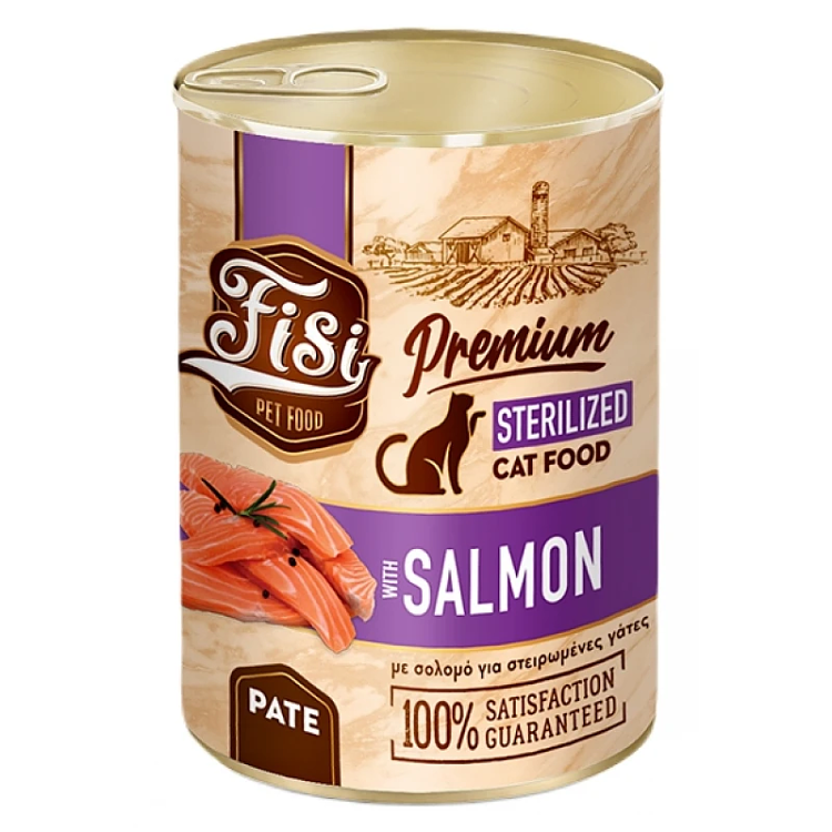 Υγρή τροφή γάτας Fisi Cat Adult Sterilised Σολομός Pate 400gr.
