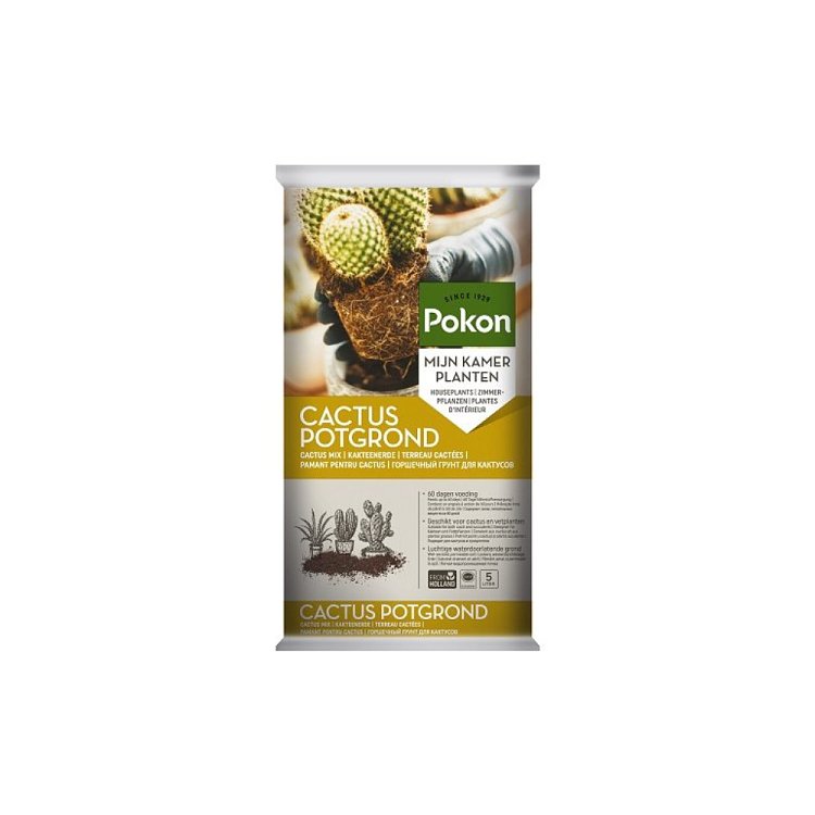Το φυτόχωμα Pokon Cactus Mix είναι κατάλληλο τόσο για κάκτους όσο και για παχύφυτα. Στο φυσικό τους περιβάλλον, αυτά τα φυτά μπορεί να μείνουν για μήνες χωρίς σταγόνα βροχής, εναλλάξ με σύντομες αλλά έντονες βροχοπτώσεις. Αυτό το χώμα έχει δημιουργηθεί ειδικά για να καλύψει τις ανάγκες αυτών των φυτών. Το Pokon Cactus Mix περιέχει μόνο την καλύτερη ποιότητα πρώτων υλών, όπως τύρφη. Αυτό το φυτόχωμα είναι ένα καλά αεριζόμενο και διαπερατό μείγμα τύρφης, που επιτρέπει στους κάκτους και τα παχύφυτα να παίρνουν εύκολα το νερό που χρειάζονται από αυτό, ενώ τυχόν περίσσεια νερού αποστραγγίζεται. Το φυτόχωμα περιέχει επίσης αρκετά θρεπτικά στοιχεία για περίπου 60 ημέρες.