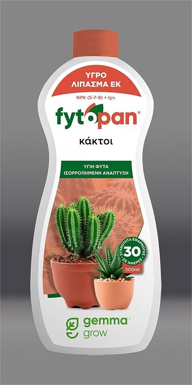 Το Fytopan για κάκτους είναι ένα σύνθετο υγρό λίπασμα εμπλουτισμένο με ιχνοστοιχεία.Είναι πλήρως υδατοδιαλυτό και εξασφαλίζει την ισορροπημένη ανάπτυξη και την διατήρηση της ευρωστίας και υγείας των φυτών.