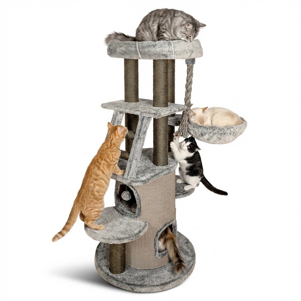 🐾 Ο Παράδεισος του Ξυσίματος: Ξεχάστε τις γρατζουνιές στον καναπέ! Οι ανθεκτικοί κορμοί είναι τυλιγμένοι με φυσικό σχοινί Sisal, προσφέροντας την τέλεια υφή για να ακονίζουν οι γάτες τα νύχια τους και να τεντώνονται με ασφάλεια.
