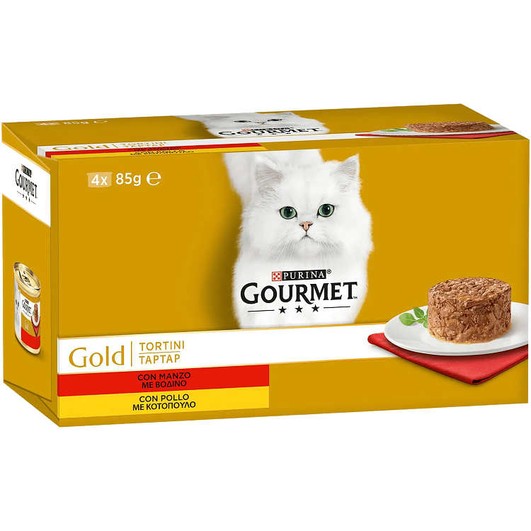Οδηγίες αποθήκευσης Φυλάσσετε σε ξηρό και δροσερό μέρος με τη συσκευασία του ερμητικά κλειστή, ώστε το προϊόν να διατηρείται φρέσκο. Για μια μέση ενήλικη γάτα (4 κιλά), ταΐστε 3 κονσέρβες την ημέρα σε τουλάχιστον 2 ξεχωριστά γεύματα. Ειδικά χαρακτηριστικά προϊόντος . Η σειρά GOURMET Tartar είναι μια νόστιμη σειρά φτιαγμένη από υψηλής ποιότητας συστατικά, για μια υπέροχη γευστική εμπειρία που σίγουρα θα απολαύσει η γάτα σας. . Όλες οι συνταγές GOURMET™ Gold παρασκευάζονται χωρίς προσθήκη χρωμάτων, χωρίς προσθήκη τεχνητών συντηρητικών και χωρίς προσθήκη τεχνητών αρωμάτων.
