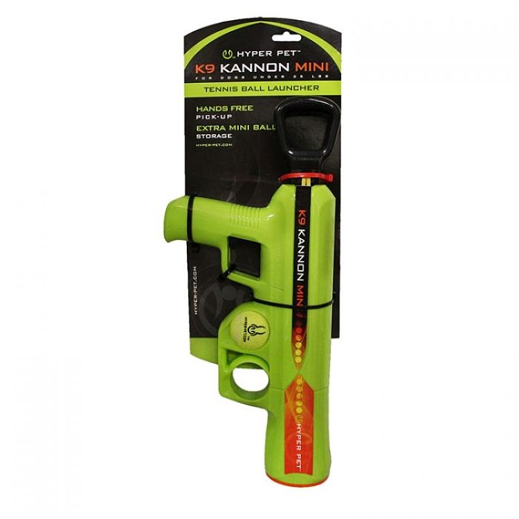 Είστε έτοιμοι να διασκεδάσετε με τον καλύτερό σας φίλο και να συνεχίσετε ένα παιχνίδι φέρεσης για ώρες; Τα κανόνια Hyper Pet K9 είναι τα τέλεια παιχνίδια για ώρες διαδραστικού παιχνιδιού στην αυλή, στο πάρκο ή στην παραλία. Εκτοξεύουν μπάλες του τένις στον αέρα για ένα υπέροχο παιχνίδι φέρεσης χωρίς να καταπονούν το χέρι σας. Ο καινοτόμος, ελαφρύς σχεδιασμός μας επιτρέπει το μάζεμα χωρίς χέρια, ώστε να μην αγγίξετε ποτέ ξανά μια μπάλα του τένις που έχει σάλια. Το μόνο που έχετε να κάνετε είναι να τοποθετήσετε το βαρέλι πάνω από την μπάλα και να πιέσετε απαλά προς τα κάτω για να μαζέψετε την μπάλα. Κάθε εκτοξευτής περιλαμβάνει μία μπάλα τένις Hyper Pet με επιπλέον χώρο αποθήκευσης για δύο ακόμη μπάλες. Οι έντονα χρωματιστές μπάλες τένις μας είναι εύκολο να εντοπιστούν από τον σκύλο σας στο γρασίδι, τους θάμνους ή τα φύλλα. Οι αυθεντικοί εκτοξευτές μπαλών Hyper Pet K9 Kannon K2 και Mini είναι ιδανικοί για εκπαίδευση, άσκηση και συνολική φυσική κατάσταση. Όχι μόνο θα κρατήσουν τον σκύλο σας χαρούμενο και υγιή, αλλά αποτελούν και εξαιρετικά δώρα. Όπως με όλα τα παιχνίδια και τους εκτοξευτές κατοικίδιων, συνιστάται ιδιαίτερα η επίβλεψη από γονείς.