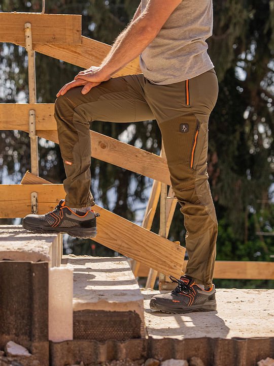 Ελαστικό, αδιάβροχο παντελόνι εργασίας, με πλαϊνά ανοίγματα αερισμού τα οποία κλείνουν με φερμουάρ.