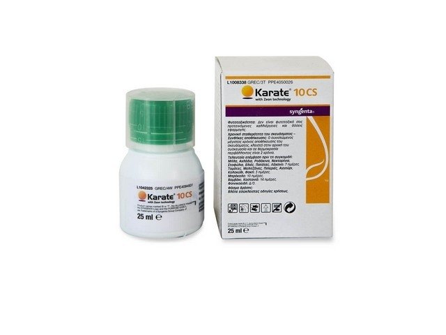 Το KARATE 1,5 CS with zeon technology, είναι ευρέως φάσματος πυρεθρινοειδές εντομοκτόνο και δρα δι’ επαφής και διά στομάχου, με προληπτική και κατασταλτική δράση για την αντιμετώπιση μυζητικών καθώς και μασητικών εντόμων σε διάφορες καλλιέργειες. Δρα στο νευρικό σύστημα των εντόμων, παρεμποδίζοντας το κλείσιμο των διαύλων Na+ στους νευράξονες των νευρικών κυττάρων. Αυτό έχει ως αποτέλεσμα μία συνεχή νευρομυϊκή μεταφορά μηνυμάτων, που οδηγεί σε υπερδιέγερση, παράλυση και θάνατο των εντόμων.