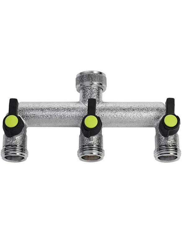 Συμβατότητα: Διαθέτει θηλυκό ρακόρ για σύνδεση στη βρύση (συνήθως 3/4" ή 1") και οι έξοδοι είναι συμβατές με τους κλασικούς ταχυσυνδέσμους κήπου.