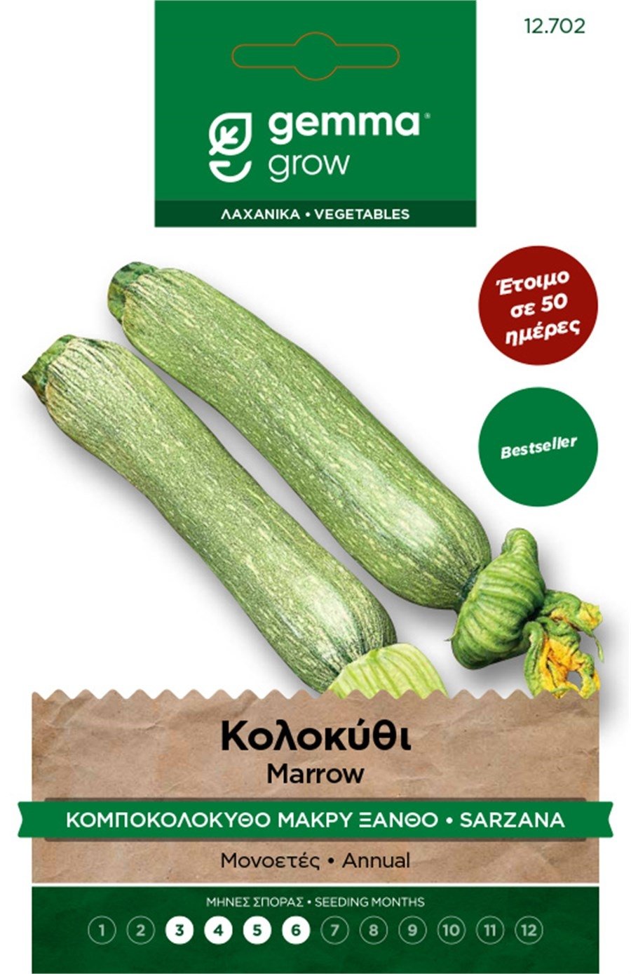 Bestseller. Έτοιμο σε 50 ημέρες. Μονοετές. Ποικιλία με κυλινδρικούς καρπούς με διακριτικές ραβδώσεις και με πράσινο ανοιχτό χρώμα. Μεγάλο άνθος που διατηρείται και μετά την συγκομιδή. Απόσταση φυτών (εκ.): 60. Απόσταση γραμμών (εκ.): 120-150. Βάθος σποράς (εκ.):2-3. Ημέρες φυτρώματος: 8-10. Έναρξη συγκομιδής (ημέρες): 50. Ποικιλία: Alberello di Sarzana. 6401