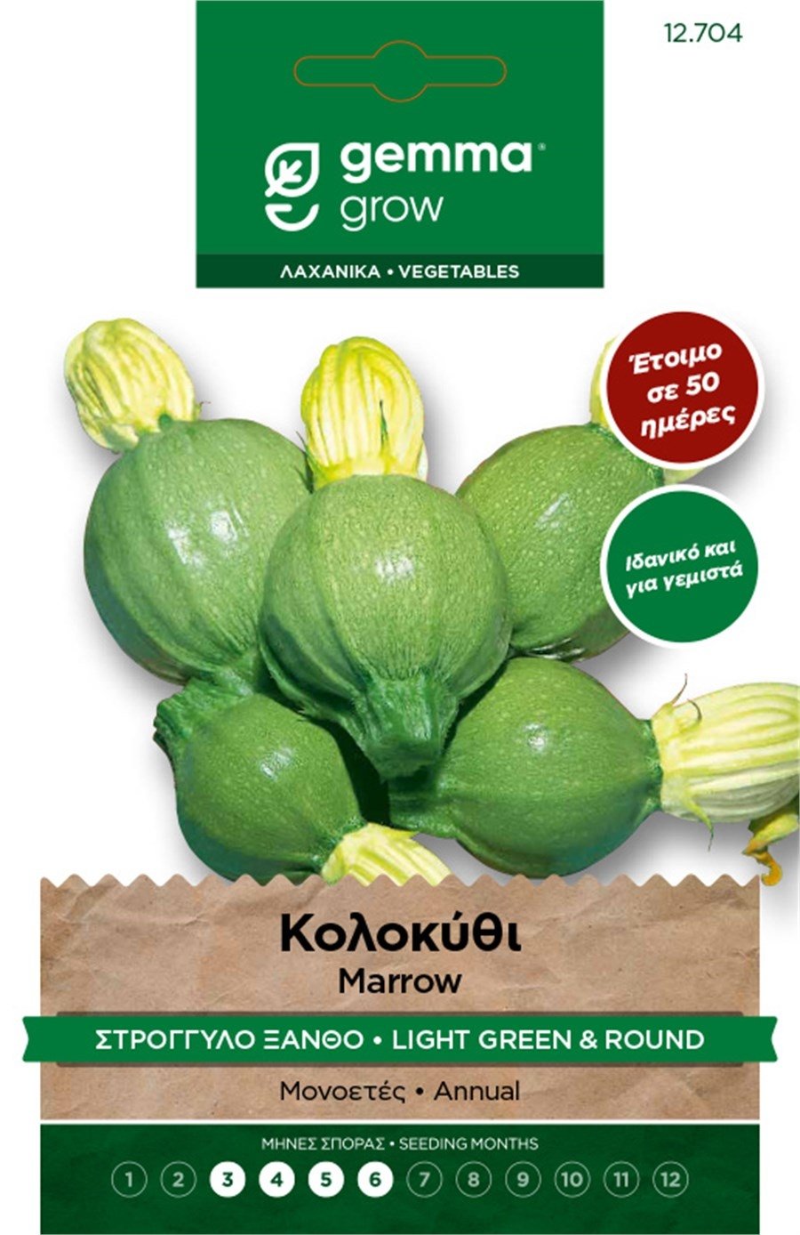 Ιδανικό και για γεμιστά. Έτοιμο σε 50 ημέρες. Μονοετές. Ποικιλία με στρογγυλούς καρπούς και ελαφριές ραβδώσεις, χρώματος πράσινου ανοιχτού. Μαγειρεύεται και με γέμιση ρυζιού ή άλλων υλικών. Απόσταση φυτών (εκ.): 60. Απόσταση γραμμών (εκ.): 120-150. Βάθος σποράς (εκ.):2-3. Ημέρες φυτρώματος: 8-10. Έναρξη συγκομιδής (ημέρες): 50. Ποικιλία: Tonda chiara di Toscana. 6351