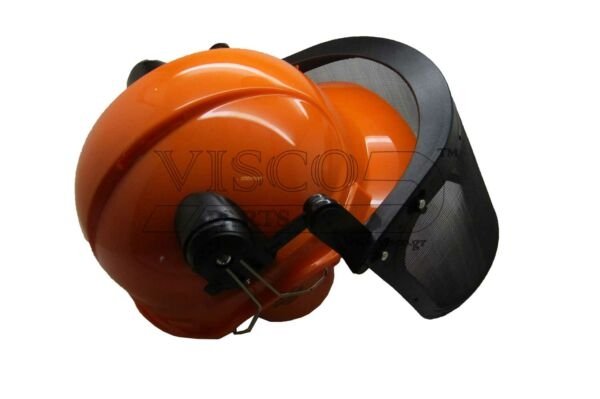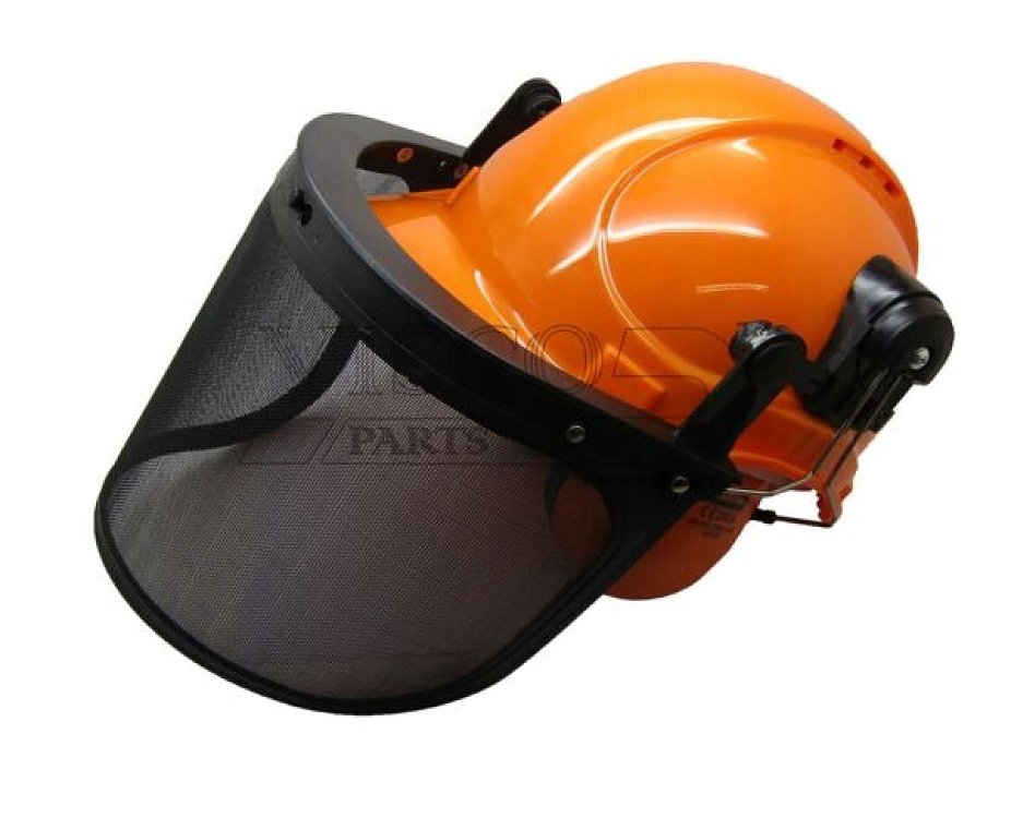 Αυτές οι εικόνες δείχνουν ένα σετ προστασίας κεφαλής (κράνος) που είναι ειδικά σχεδιασμένο για εργασίες υλοτομίας, κηπουρικής (π.χ. χρήση χορτοκοπτικού) και δασοκομίας.