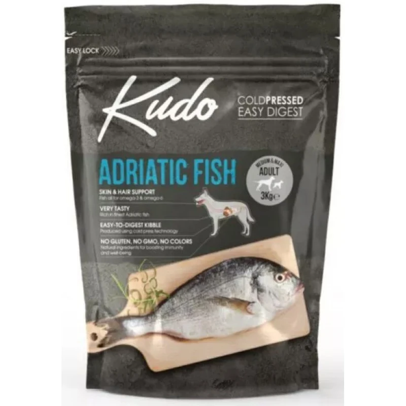 Το KUDO ADRIATIC FISH ADULT MEDIUM & MAXI είναι μια πλήρης, ισορροπημένη, μονοπρωτεϊνική cold pressed ξηρή τροφή για ενήλικους σκύλους μεσαίου μεγέθους και μεγαλόσωμων φυλών.