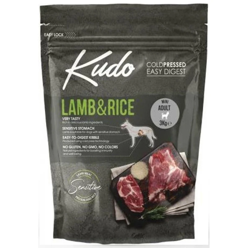 Το KUDO LAMB & RICE MINI ADULT είναι μια πλήρης ξηρή τροφή για σκύλους. Είναι πλήρες γεύμα που περιέχει όλα τα θρεπτικά συστατικά που απαιτούνται για έναν ενήλικο σκύλο μικρής ράτσας ηλικίας 1 έτους και άνω.