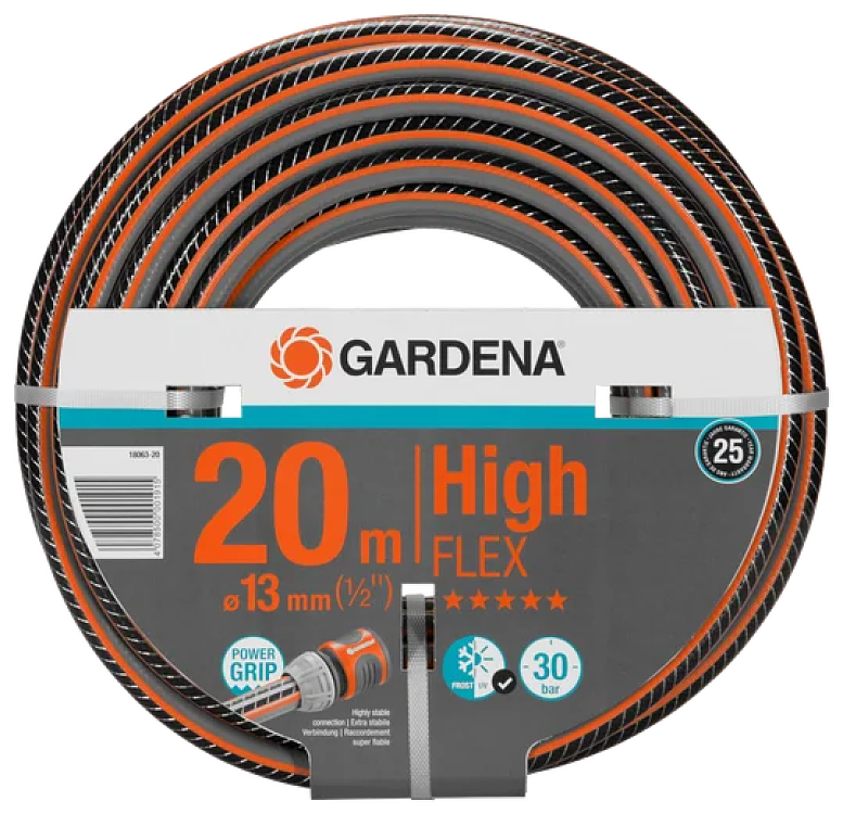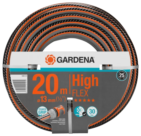 Το Λάστιχο Highflex Comfort της GARDENA, με τεχνολογία Power Grip, εγγυάται την τέλεια σύνδεση μεταξύ λάστιχου και ταχυσυνδέσμου. Χάρη στη νέα τεχνολογία, λάστιχο και ταχυσύνδεσμος αλληλοσυνδέονται όπως οι οδοντωτοί τροχοί. Το Power Grip καθιστά δυνατό αυτό που πάντα ήθελαν οι ιδιοκτήτες κήπων, αξιόπιστη σύνδεση με τέλεια δύναμη συγκράτησης. Ένα θετικό στοιχείο αυτής της τεχνολογίας είναι ότι το λάστιχο διπλώνεται πιο εύκολα και σύρεται καλά. Χάρη στην πυκνή πλέξη με δύο σπείρες υψηλής ποιότητας που απλώνονται σε αντίθετες κατευθύνσεις, το λάστιχο είναι ανθεκτικό στην πίεση και διατηρεί το σχήμα του, αλλά ταυτόχρονα είναι πιο ευέλικτο στην εφαρμογή από το Comfort FLEX. Αυτό συμβαίνει λόγω της αυξημένης πυκνότητας των σπειρών που κάνουν το λάστιχο ακόμα πιο ευέλικτο και εύκολο στη χρήση. Δεν μπλέκεται σε κόμπους και δεν τσακίζει. Αυτές είναι οι καλύτερες προϋποθέσεις για μια άνετη και ευέλικτη χρήση στον κήπο σας. Εάν απαιτείται, μπορεί να συμπληρωθεί με τα εξαρτήματα και τις συσκευές σύνδεσης του Συστήματος Original GARDENA System. Είναι φυσικά ανθεκτικό στην υπεριώδη ακτινοβολία. Τα χοντρά τοιχώματα το καθιστούν ιδιαίτερα στιβαρό και ανθεκτικό. Πίεση: 30 bar. Εγγύηση: 25 έτη.