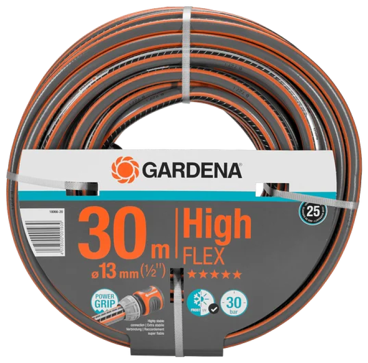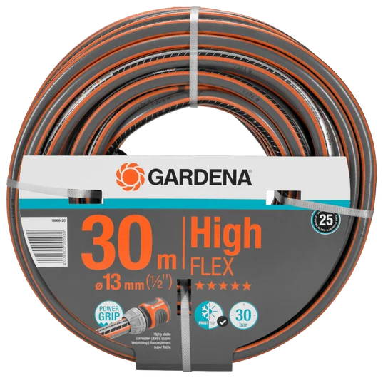 Το Λάστιχο Highflex Comfort της GARDENA, με τεχνολογία Power Grip, εγγυάται την τέλεια σύνδεση μεταξύ λάστιχου και ταχυσυνδέσμου. Χάρη στη νέα τεχνολογία, λάστιχο και ταχυσύνδεσμος αλληλοσυνδέονται όπως οι οδοντωτοί τροχοί. Το Power Grip καθιστά δυνατό αυτό που πάντα ήθελαν οι ιδιοκτήτες κήπων, αξιόπιστη σύνδεση με τέλεια δύναμη συγκράτησης. Ένα θετικό στοιχείο αυτής της τεχνολογίας είναι ότι το λάστιχο διπλώνεται πιο εύκολα και σύρεται καλά. Χάρη στην πυκνή πλέξη με δύο σπείρες υψηλής ποιότητας που απλώνονται σε αντίθετες κατευθύνσεις, το λάστιχο είναι ανθεκτικό στην πίεση και διατηρεί το σχήμα του, αλλά ταυτόχρονα είναι πιο ευέλικτο στην εφαρμογή από το Comfort FLEX. Αυτό συμβαίνει λόγω της αυξημένης πυκνότητας των σπειρών που κάνουν το λάστιχο ακόμα πιο ευέλικτο και εύκολο στη χρήση. Δεν μπλέκεται σε κόμπους και δεν τσακίζει. Αυτές είναι οι καλύτερες προϋποθέσεις για μια άνετη και ευέλικτη χρήση στον κήπο σας. Εάν απαιτείται, μπορεί να συμπληρωθεί με τα εξαρτήματα και τις συσκευές σύνδεσης του Συστήματος Original GARDENA System. Είναι φυσικά ανθεκτικό στην υπεριώδη ακτινοβολία. Τα χοντρά τοιχώματα το καθιστούν ιδιαίτερα στιβαρό και ανθεκτικό. Πίεση: 30 bar. Εγγύηση: 25 έτη.