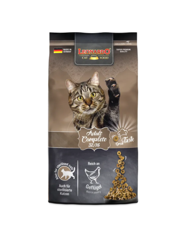 Η LEONARDO Adult Complete 32/16 αποτελεί μια πολύ γευστική επιλογή από τη σειρά LEONARDO Adult με μειωμένη περιεκτικότητα ενέργειας (16% λιπαρά) για γάτες που είναι λιγότερο ενεργητικές.