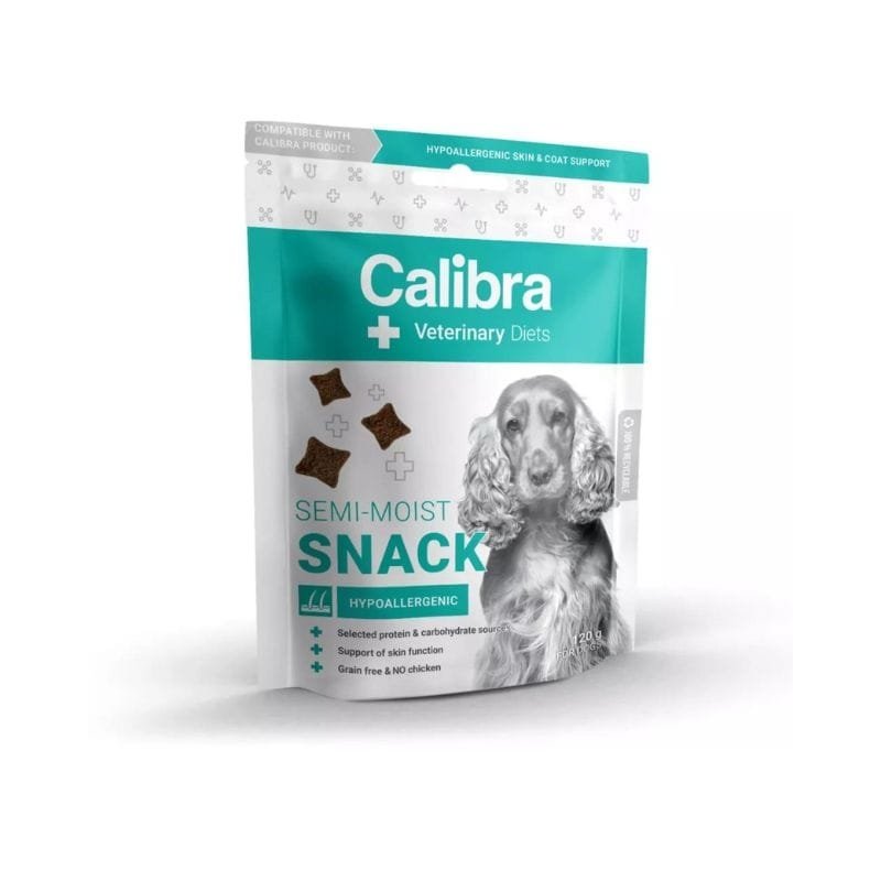 Η συνταγή υποαλλεργικού ημι-υγρού σνακ είναι επίσης σύμφωνη με την κτηνιατρική δίαιτα Calibra VD Dog Hypoallergenic Skin & Coat Support.