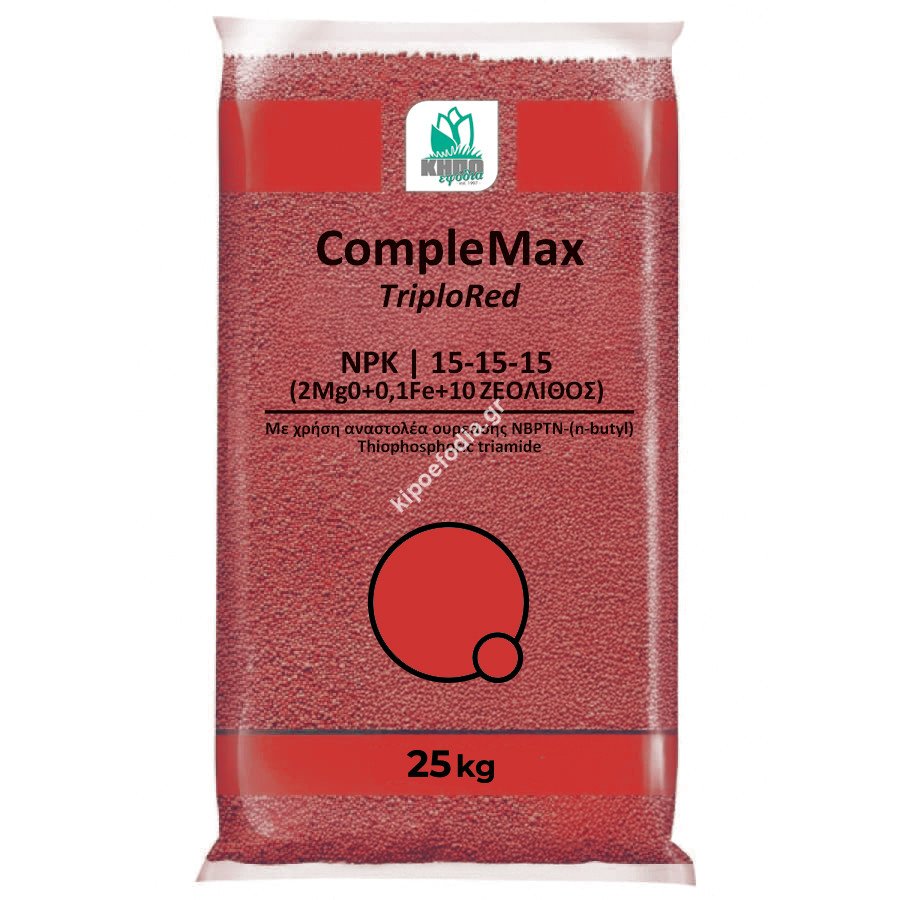 Το CompleMax TriploRed είναι κοκκώδες σύνθετο λίπασμα NPK 15-15-15, ιδανικό για βασική λίπανση και ενίσχυση της ισόρροπης ανάπτυξης των καλλιεργειών. Παρέχει άζωτο, φώσφορο και κάλιο σε ίσες αναλογίες, καλύπτοντας αποτελεσματικά τις ανάγκες των φυτών σε όλα τα στάδια ανάπτυξης.