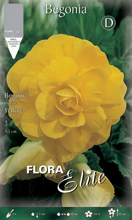 Μονόχρωμη Μπιγόνια σε κίτρινο χρώμα. Βολβώδες φυτό ανοιξιάτικης φύτευσης το ύψος του οποίου μπορεί να φτάσει τα 0,25 μέτρα. Η κάθε συσκευασία περιέχει 3 βολβούς.
