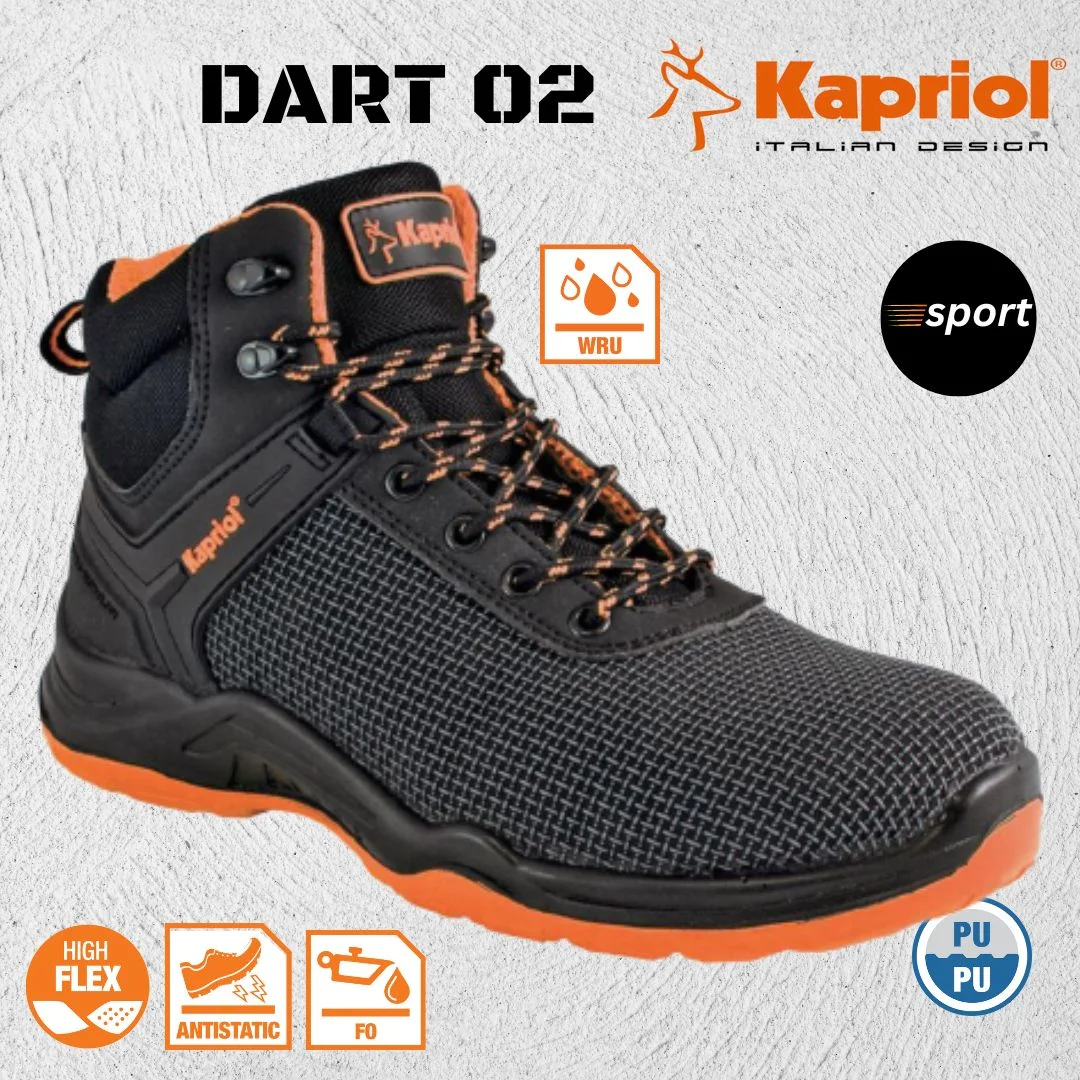 Ελαφρύ, διαπνέων μποτάκι εργασίας χωρίς προστασία δακτύλων, DART 02 FO SRC από την KAPRIOL.Κατασκευασμένο από τρισδιάστατο ύφασμα Air Mesh εγγυάται μεγάλη αντοχή στην τριβή και άνεση.