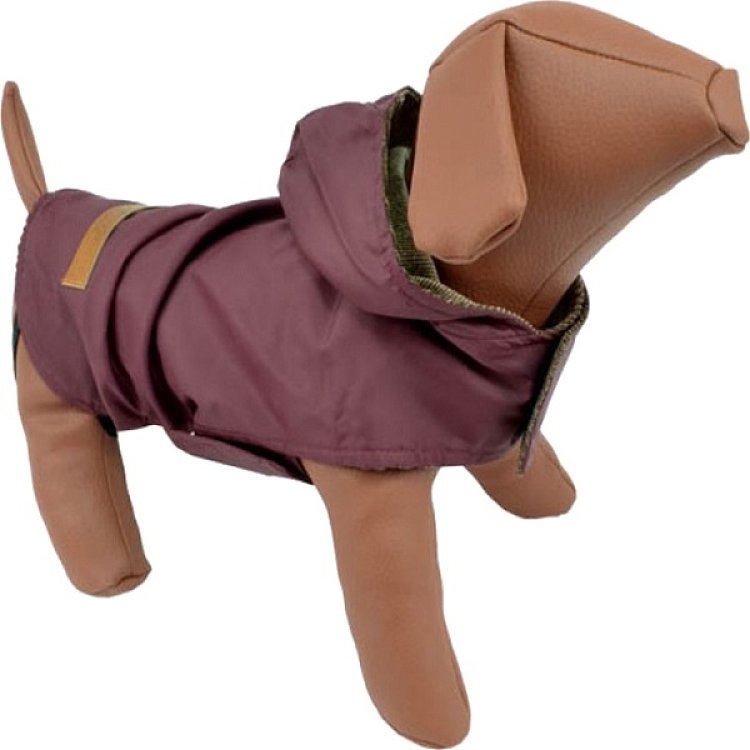 Μπουφανάκι μπορντό αδιάβροχο με κοτλέ-μπεζ εσωτερική φόδρα. Καλύπτει ολόκληρη τη ράχη για να μην βρέχεται, ενώ τα λάστιχα που εφαρμόζουν στα πίσω πόδια, όπως και το διπλό βέλκρο στο στήθος εξασφαλίζουν σταθερότητα και βολικότητα. Διαθέτει και ενιαία κουκούλα. Ιδανικό για να προσφέρετε μια αίσθηση θερμής φροντίδας στον αγαπημένο σας φίλο.