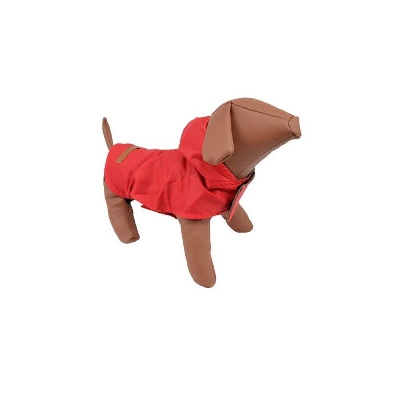 Μπουφανάκι κόκκινο αδιάβροχο με κοτλέ-μπεζ εσωτερική φόδρα. Καλύπτει ολόκληρη τη ράχη για να μην βρέχεται, ενώ τα λάστιχα που εφαρμόζουν στα πίσω πόδια, όπως και το διπλό βέλκρο στο στήθος εξασφαλίζουν σταθερότητα και βολικότητα. Διαθέτει και ενιαία κουκούλα. Ιδανικό για να προσφέρετε μια αίσθηση θερμής φροντίδας στον αγαπημένο σας φίλο.