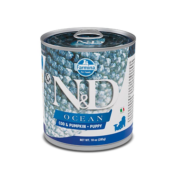 Πλήρης υγρή τροφή για κουτάβια και σκυλιά που κυοφορούν και θηλάζουν με μπακαλιάρο, ρέγγα και κολοκύθα.