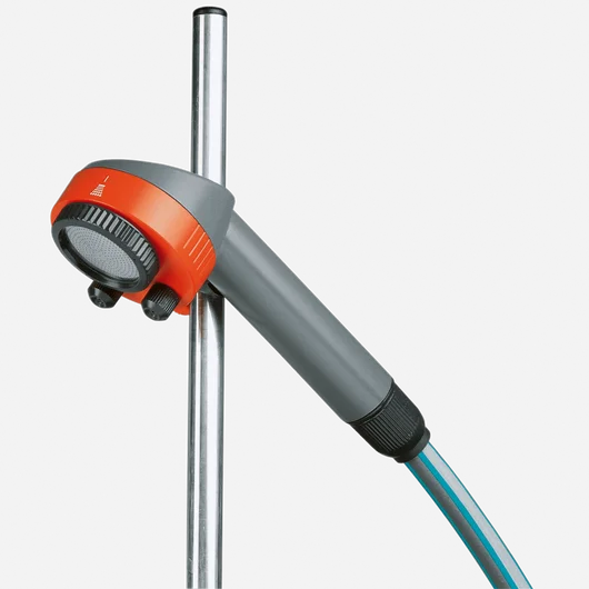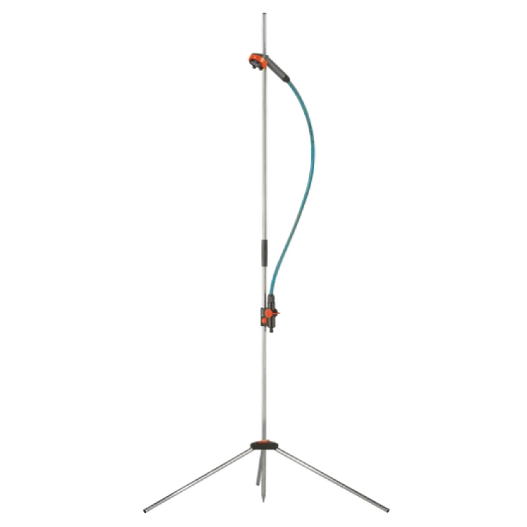Με το Ντους Κήπου Trio της GARDENA, το ντους έξω είναι τόσο άνετο σαν να βρίσκεστε στο μπάνιο σας. Με το τρίποδο στήριξης μπορείτε να τοποθετήσετε το ντους οπουδήποτε. Χάρη στην εύκαμπτη και αποσπώμενη κεφαλή ντους, η οποία είναι συνδεδεμένη σε σωλήνα 1,3 μέτρων, έχετε απόλυτη ελευθερία κινήσεων για να απολαύσετε το ντους σας στον κήπο. Διαθέτει δύο μοτίβα ψεκασμού: ήπιο ψεκασμό ευρείας γωνίας ή ρυθμιζόμενο ψεκασμό λεπτού νέφους για μια ευχάριστη αίσθηση δροσιάς. Πλήρως ρυθμιζόμενο ύψος, με το πάτημα ενός κουμπιού. Ιδανική ρύθμιση του ακροφυσίου για κάθε ύψος σώματος. Με τη βαλβίδα ρύθμισης και διακοπής μπορείτε να προσαρμόσετε τη ροή για την παροχή της επιθυμητής ποσότητας νερού.